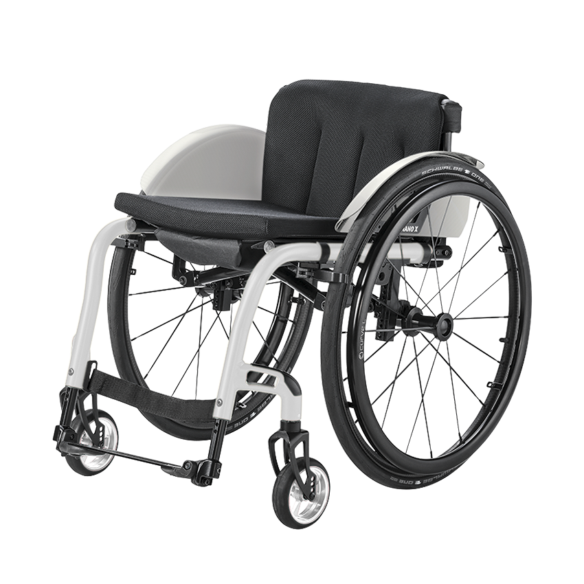 Das moderne, offene Rahmenkonzept verleiht dem NANO X ein besonders klares, reduziertes Design. Die individuellen Anpassungsmöglichkeiten machen aus jedem NANO X einen einzigartigen Rollstuhl.